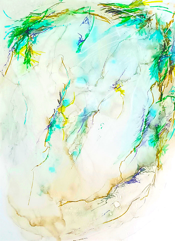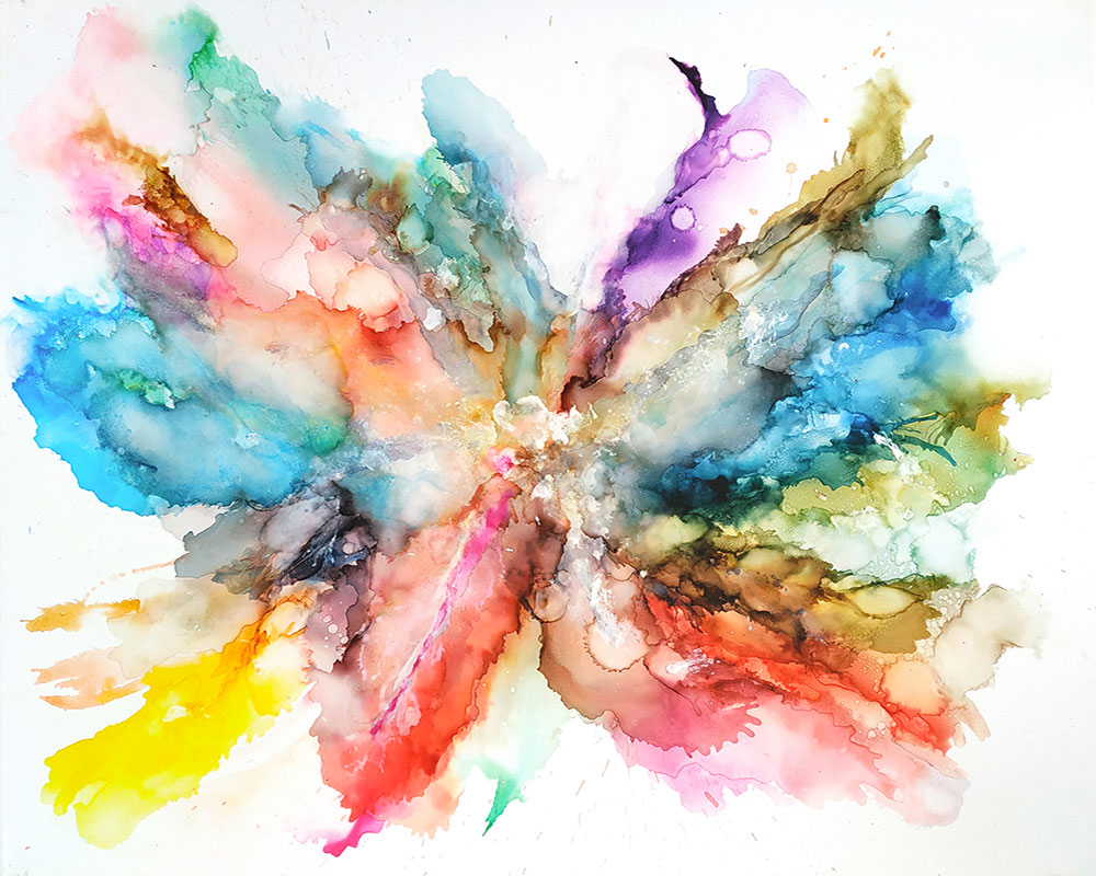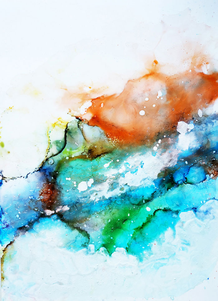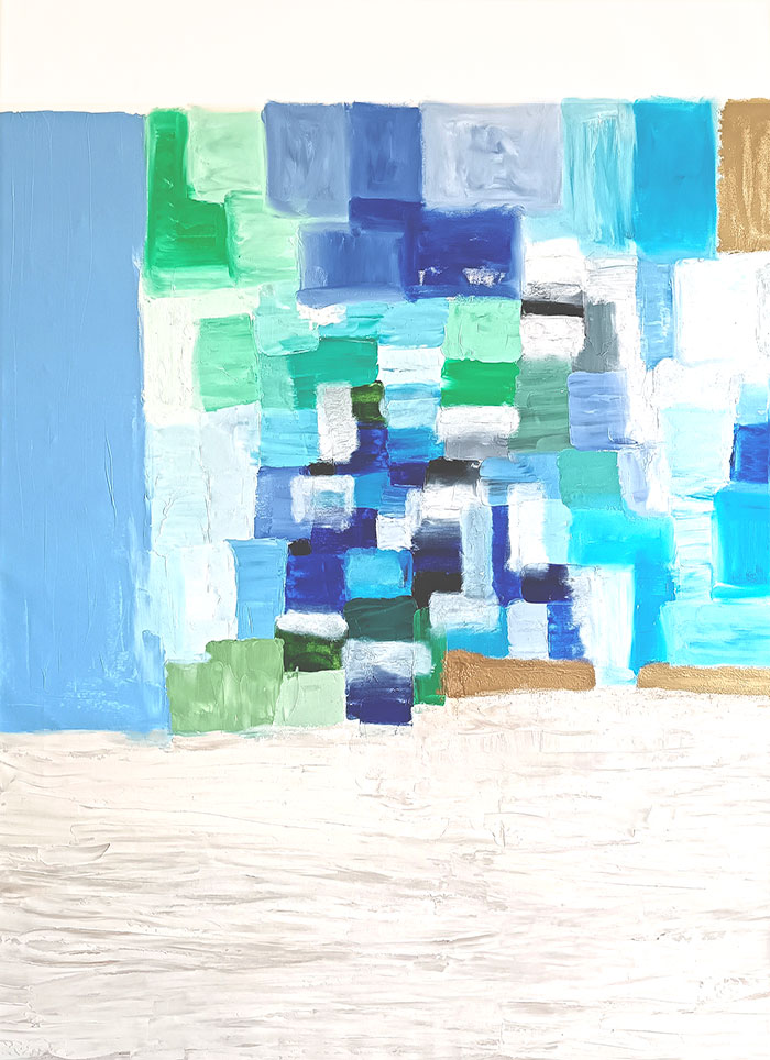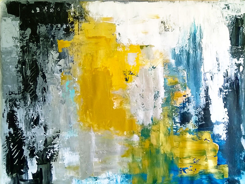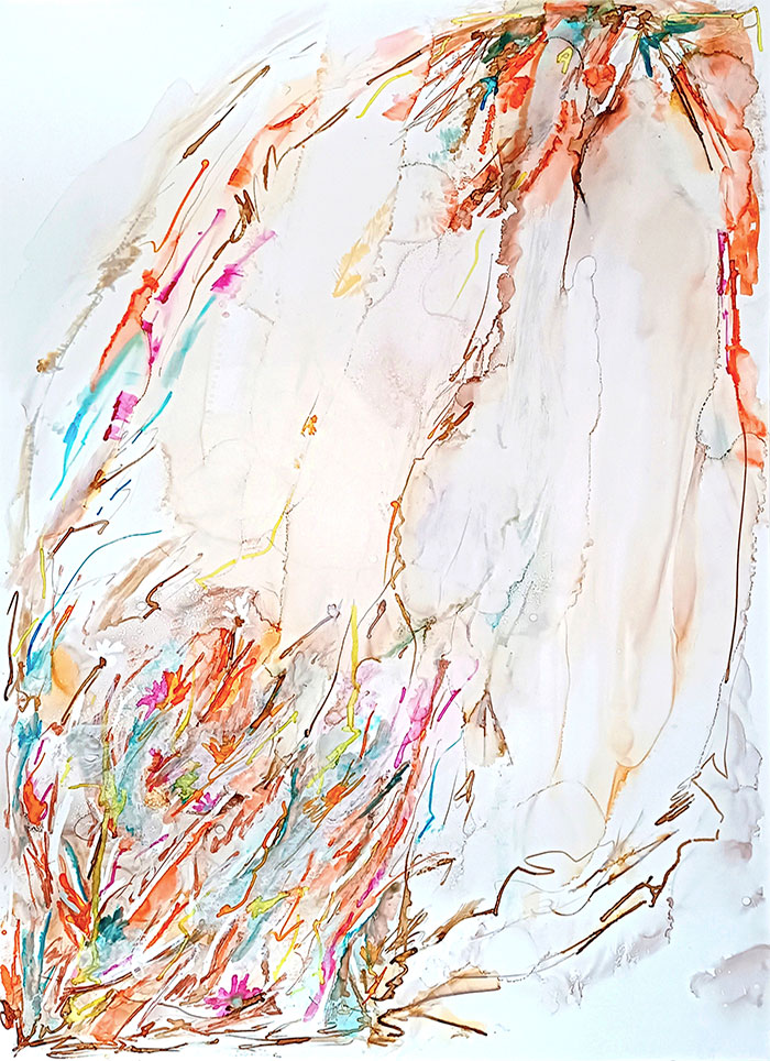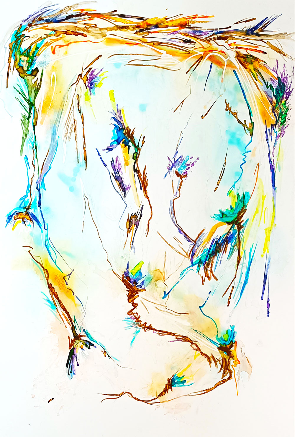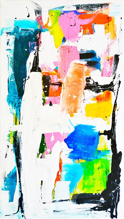 La colección TECKNICOLOR esta inspirada en la naturaleza y las sensaciones que me transmite, sea por los recuerdos de algún viaje, los olores, los colores y todo lo que en su conjunto percibo de la tierra. Se caracteriza por mezclar diferentes técnicas; movimientos fluidos, trazos fuertes, dirigidos y enmascarar algunas zonas para dejarlas sin pintura.