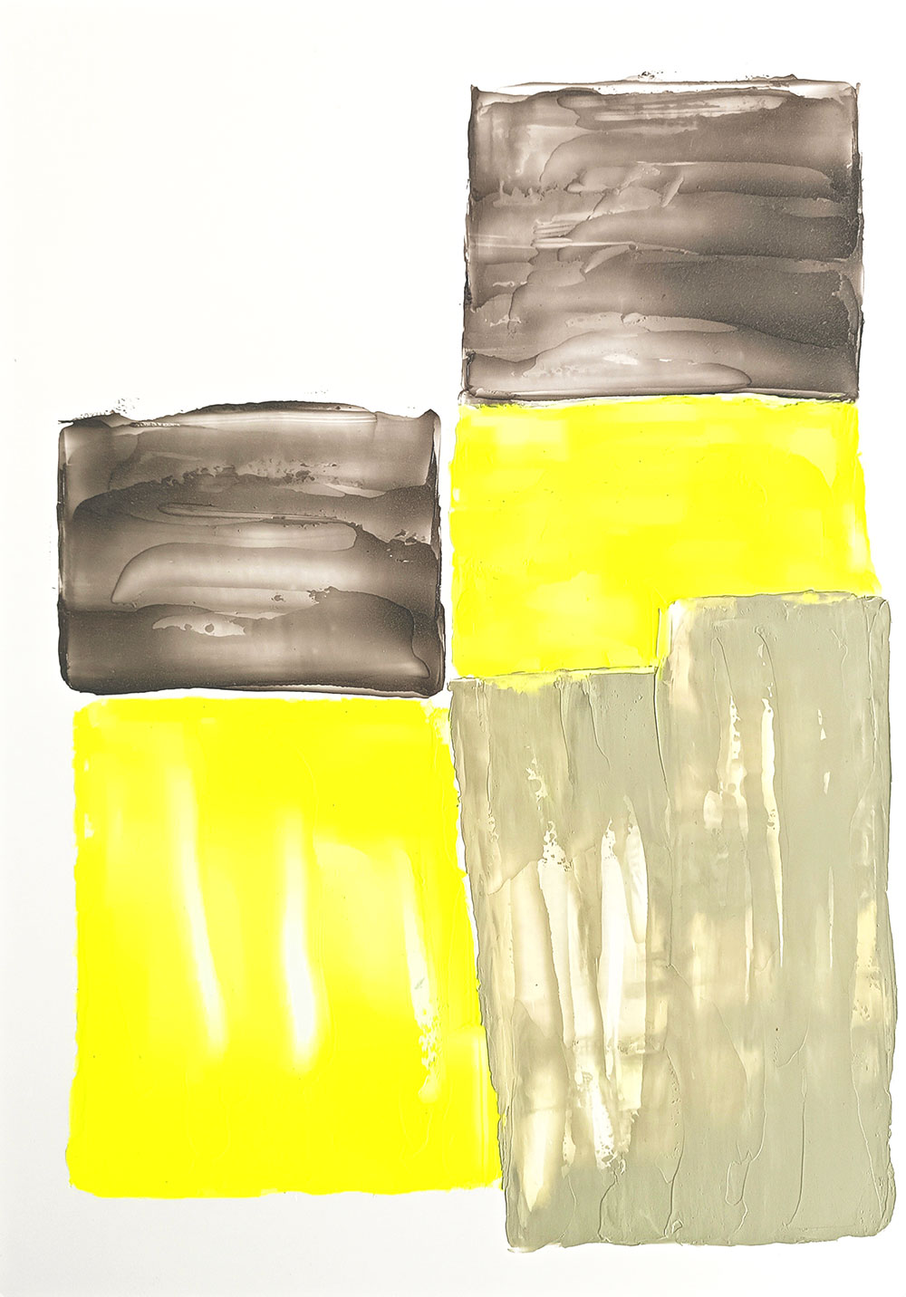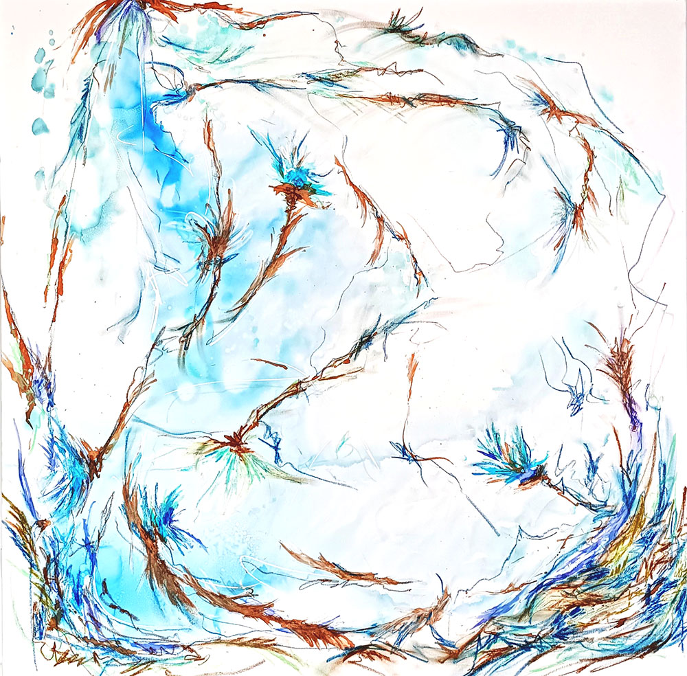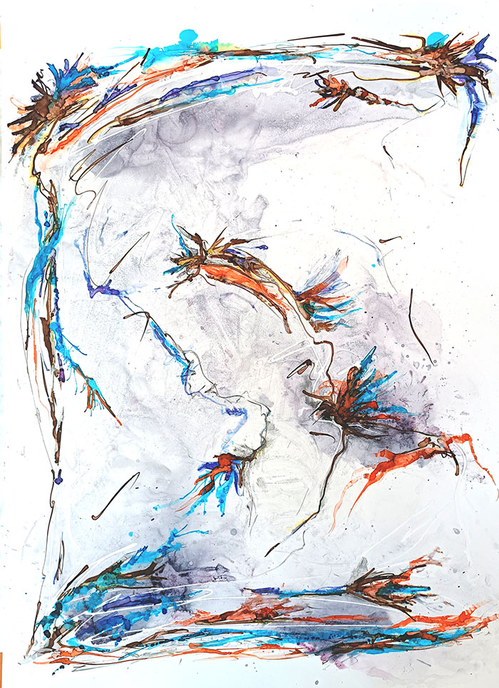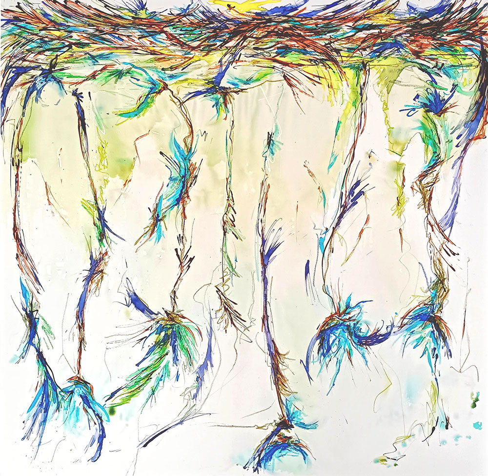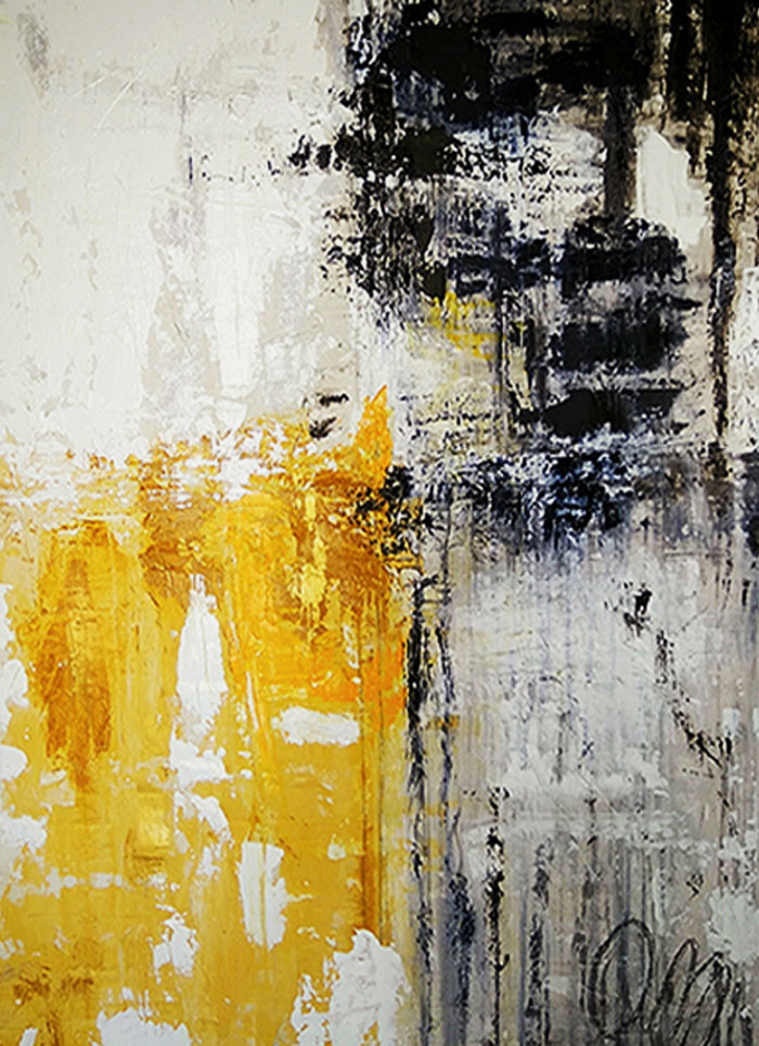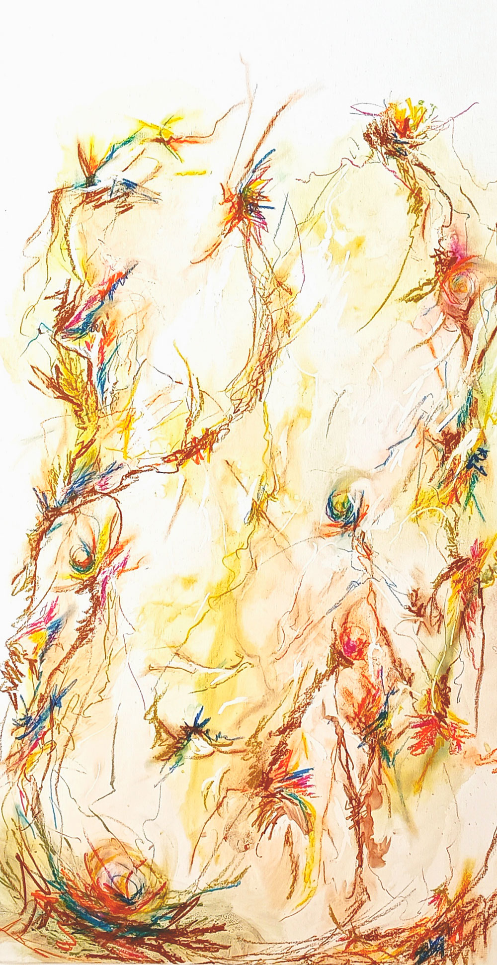 La colección TECKNICOLOR esta inspirada en la naturaleza y las sensaciones que me transmite, sea por los recuerdos de algún viaje, los olores, los colores y todo lo que en su conjunto percibo de la tierra. Se caracteriza por mezclar diferentes técnicas; movimientos fluidos, trazos fuertes, dirigidos y enmascarar algunas zonas para dejarlas sin pintura.