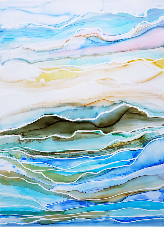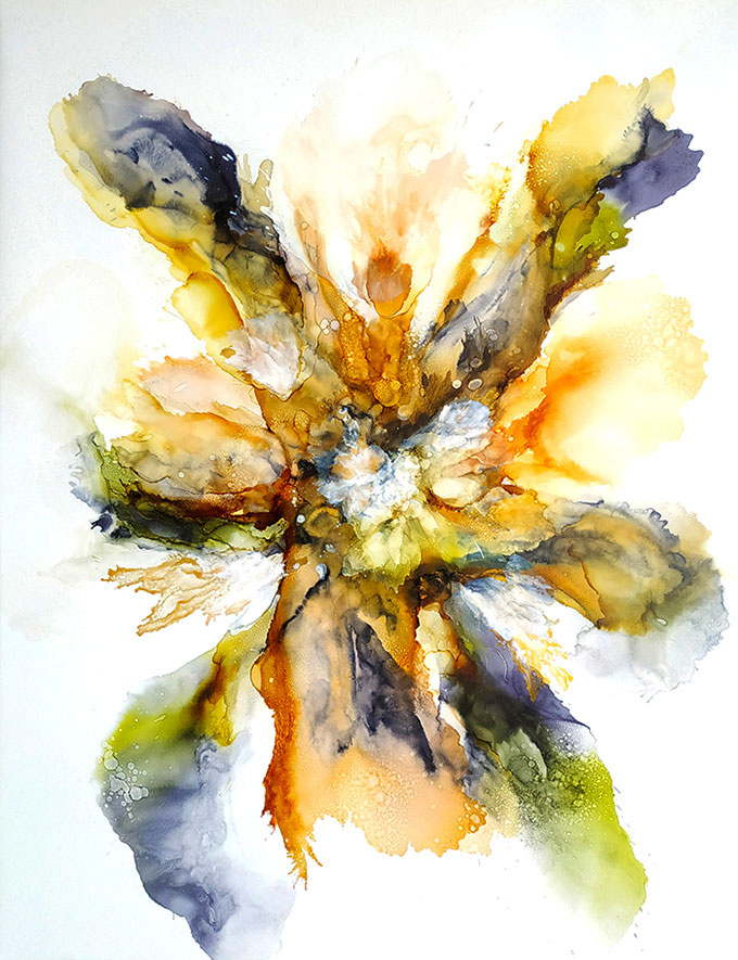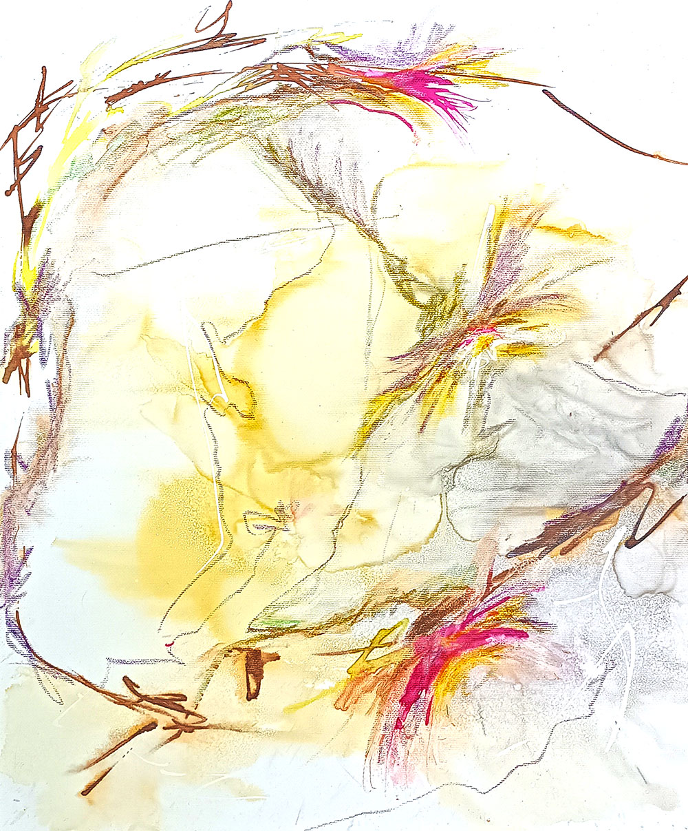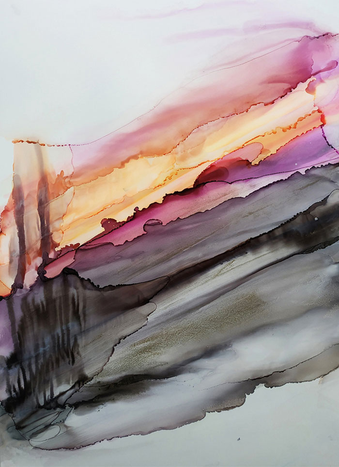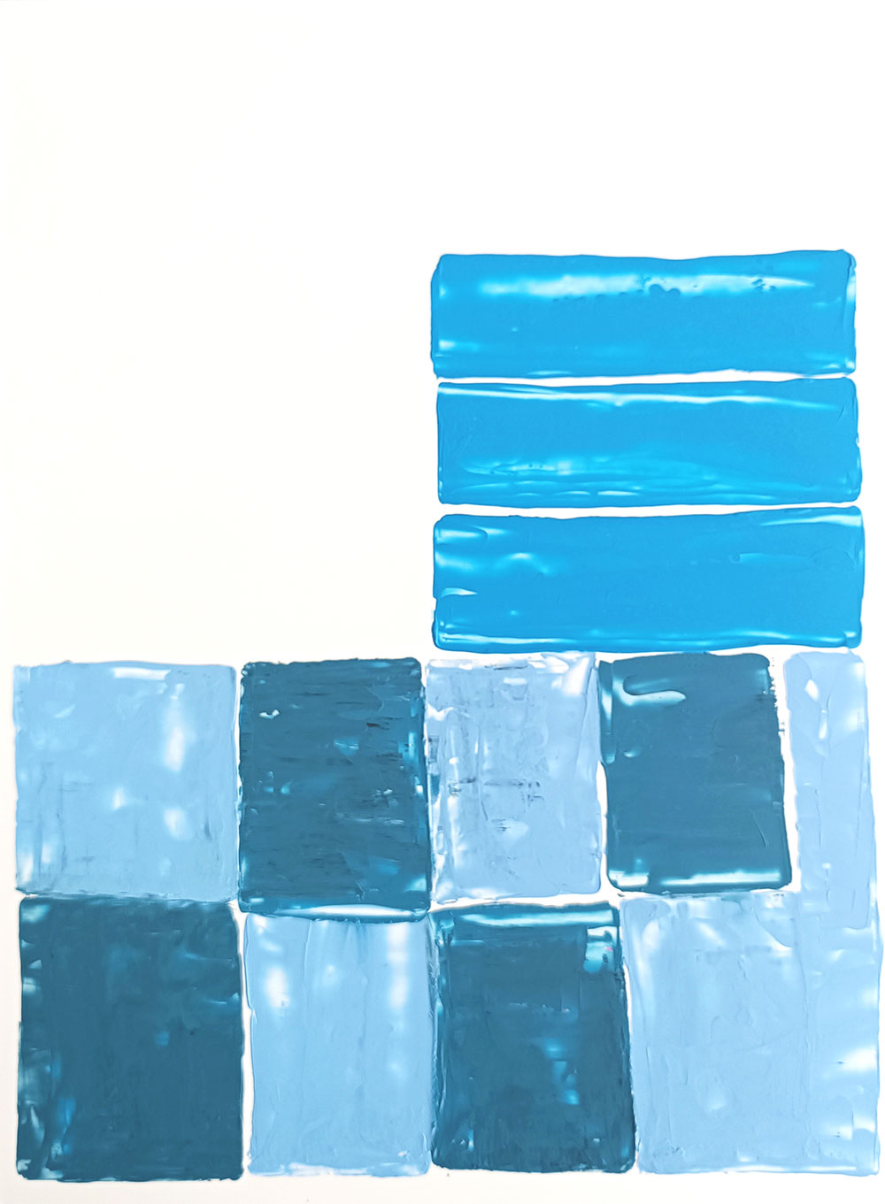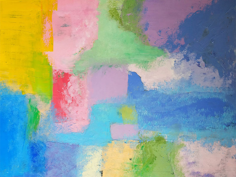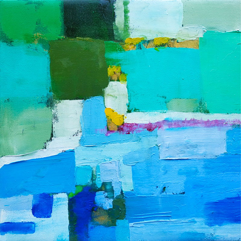 La colección TECKNICOLOR esta inspirada en la naturaleza y las sensaciones que me transmite, sea por los recuerdos de algún viaje, los olores, los colores y todo lo que en su conjunto percibo de la tierra. Se caracteriza por mezclar diferentes técnicas; movimientos fluidos, trazos fuertes, dirigidos y enmascarar algunas zonas para dejarlas sin pintura.