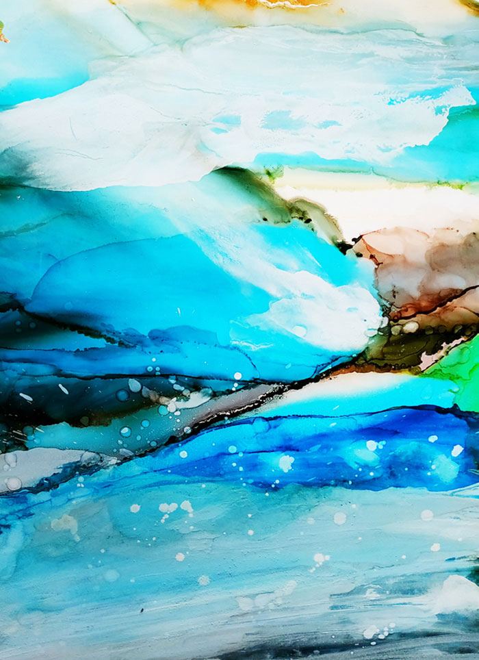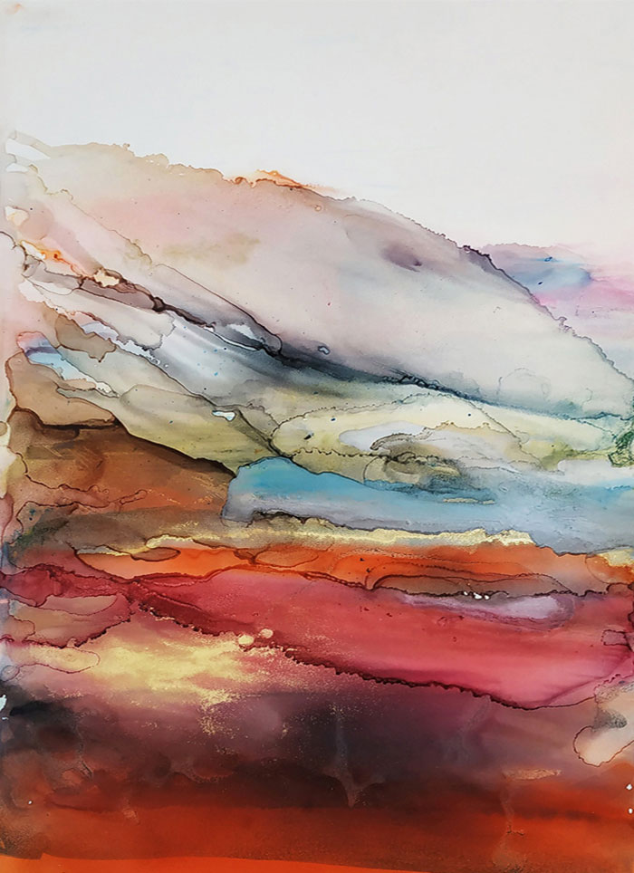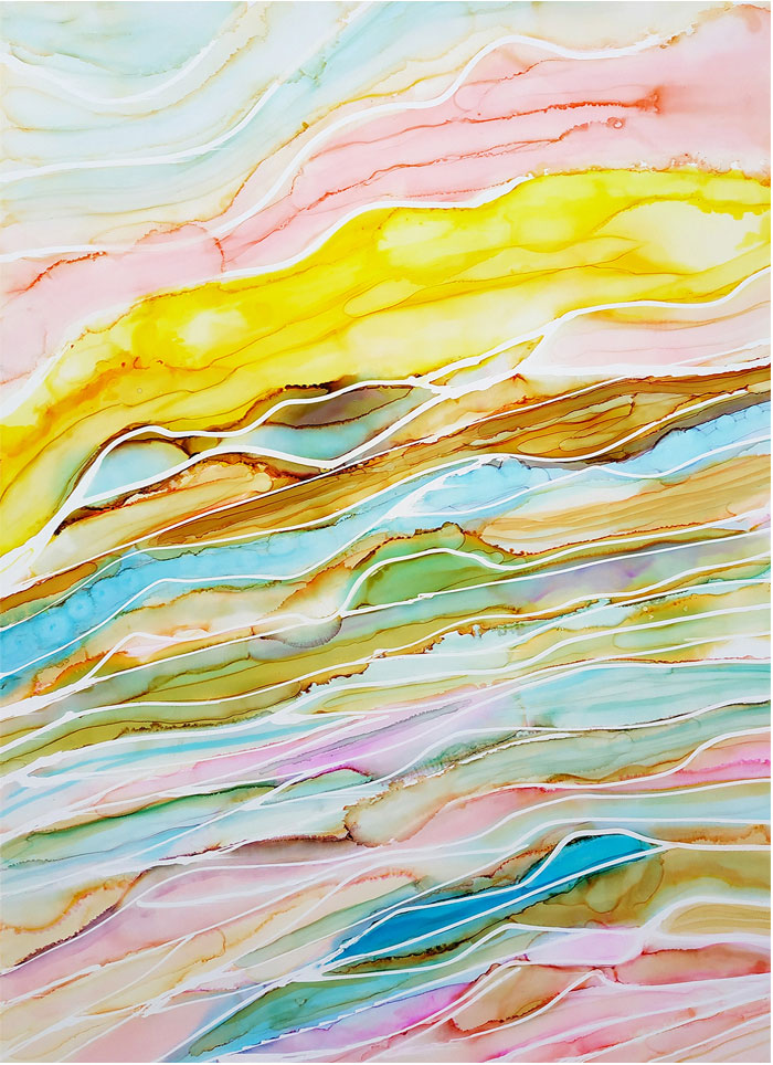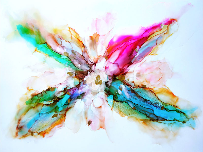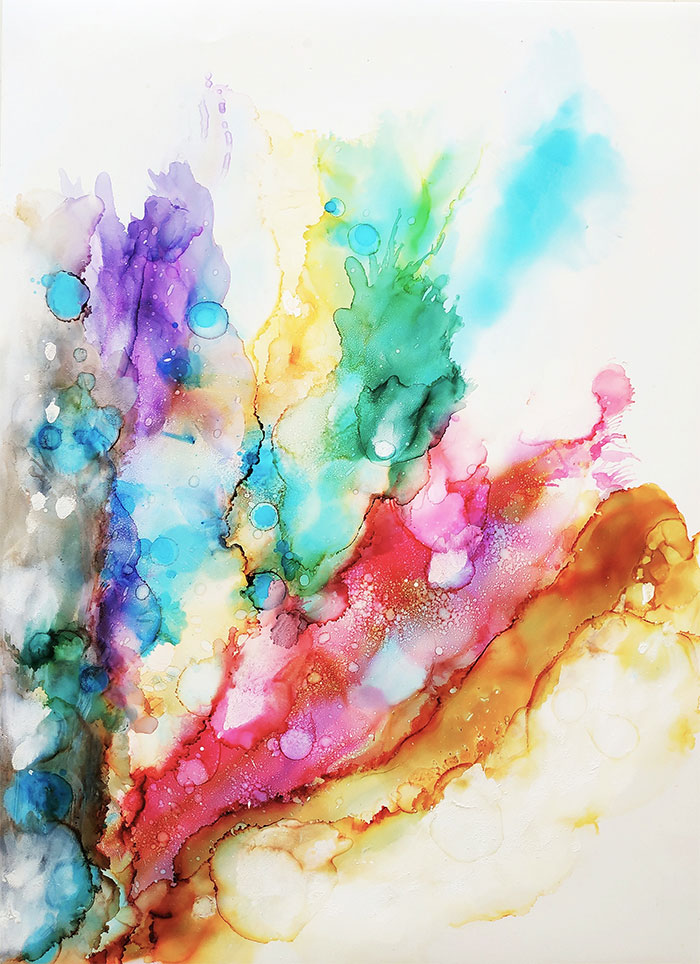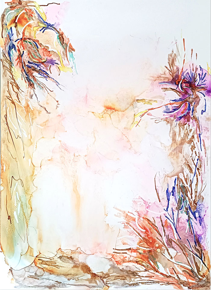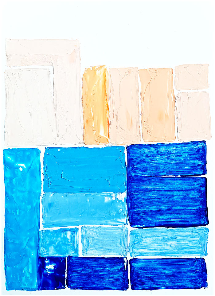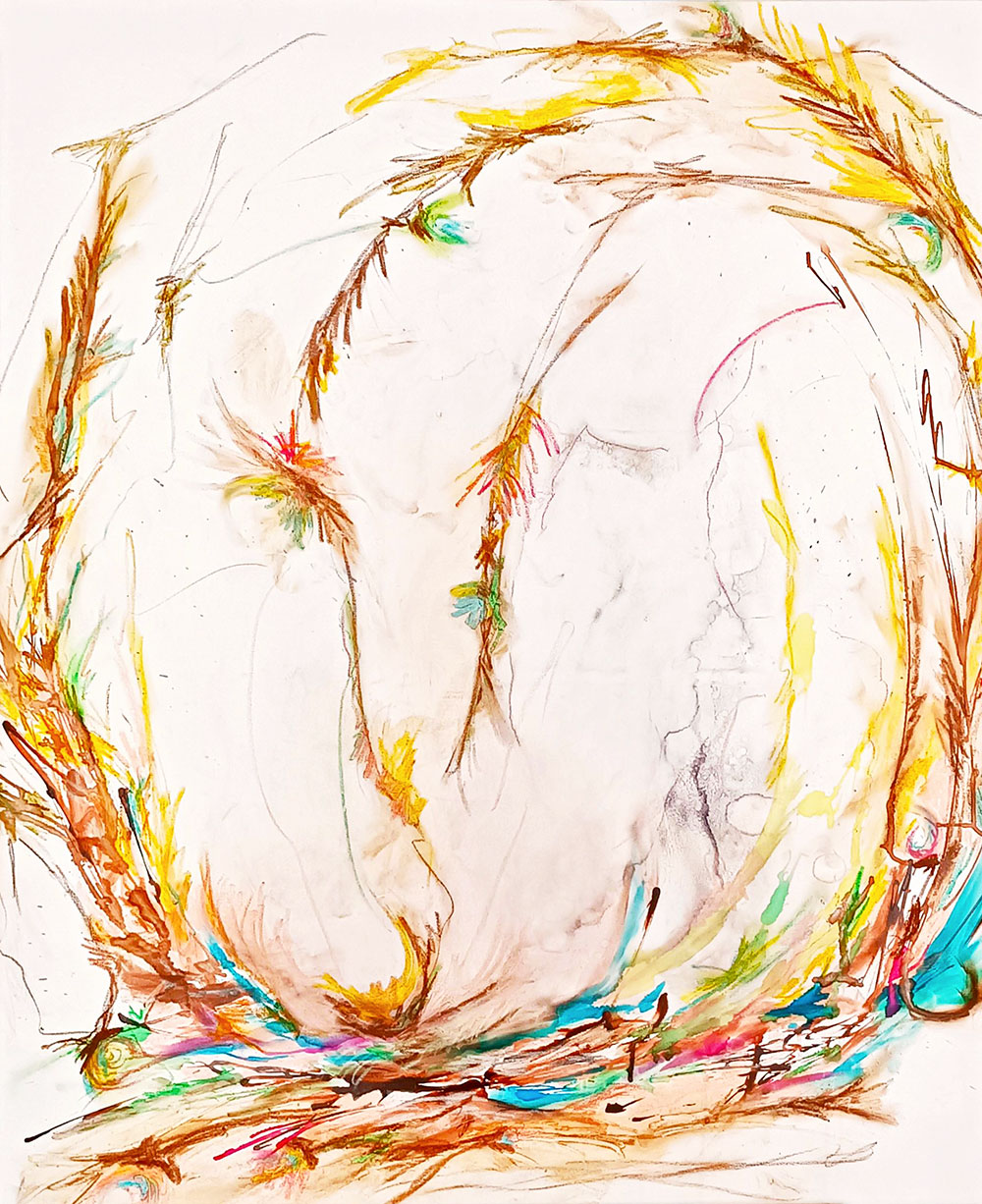 La colección TECKNICOLOR esta inspirada en la naturaleza y las sensaciones que me transmite, sea por los recuerdos de algún viaje, los olores, los colores y todo lo que en su conjunto percibo de la tierra. Se caracteriza por mezclar diferentes técnicas; movimientos fluidos, trazos fuertes, dirigidos y enmascarar algunas zonas para dejarlas sin pintura.