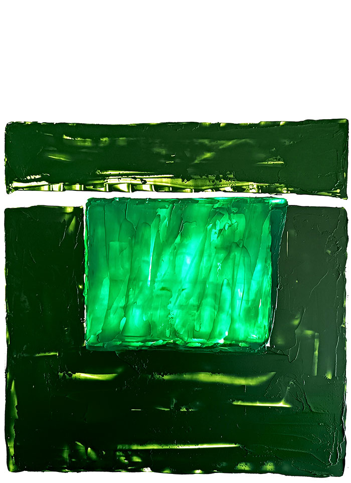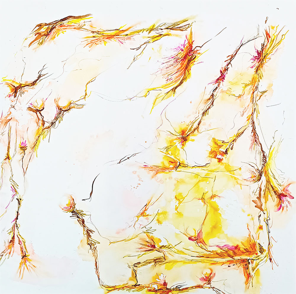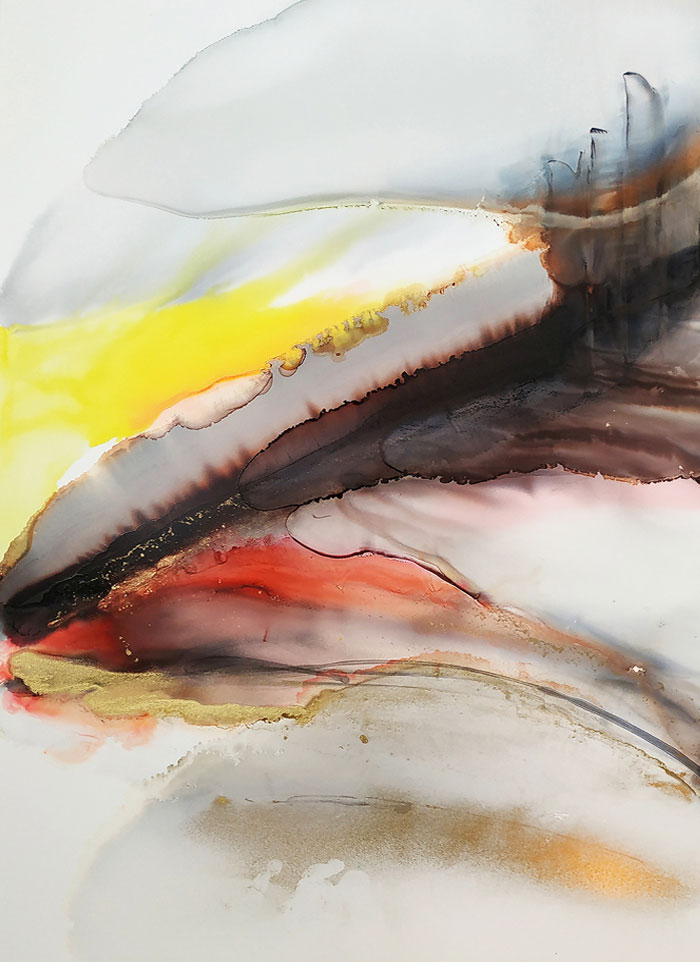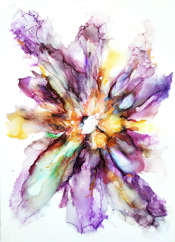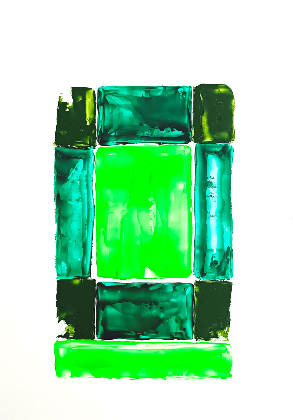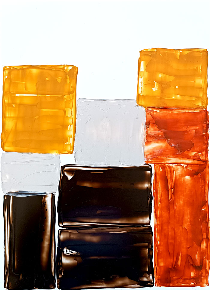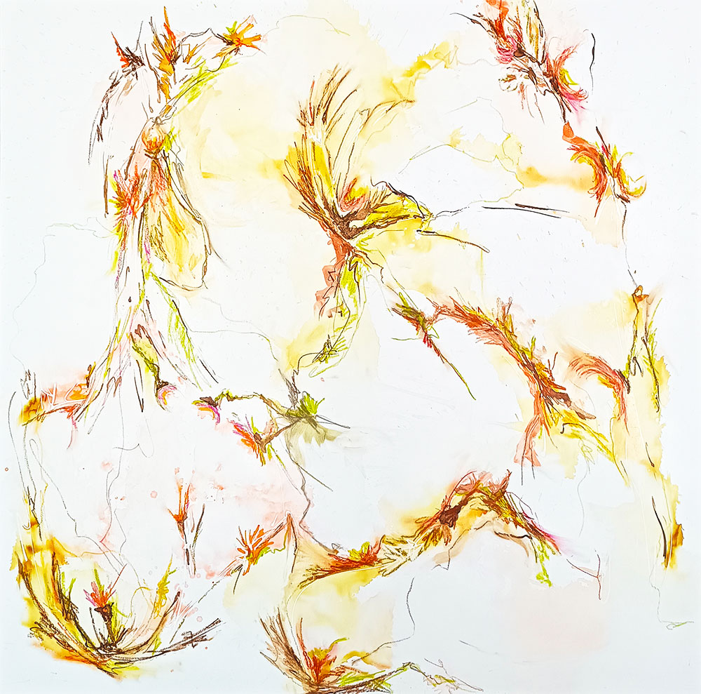 La colección TECKNICOLOR esta inspirada en la naturaleza y las sensaciones que me transmite, sea por los recuerdos de algún viaje, los olores, los colores y todo lo que en su conjunto percibo de la tierra. Se caracteriza por mezclar diferentes técnicas; movimientos fluidos, trazos fuertes, dirigidos y enmascarar algunas zonas para dejarlas sin pintura.