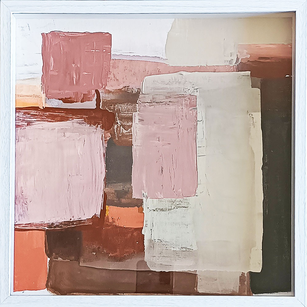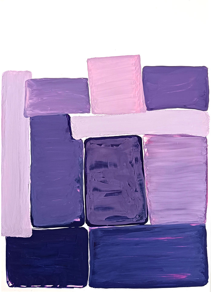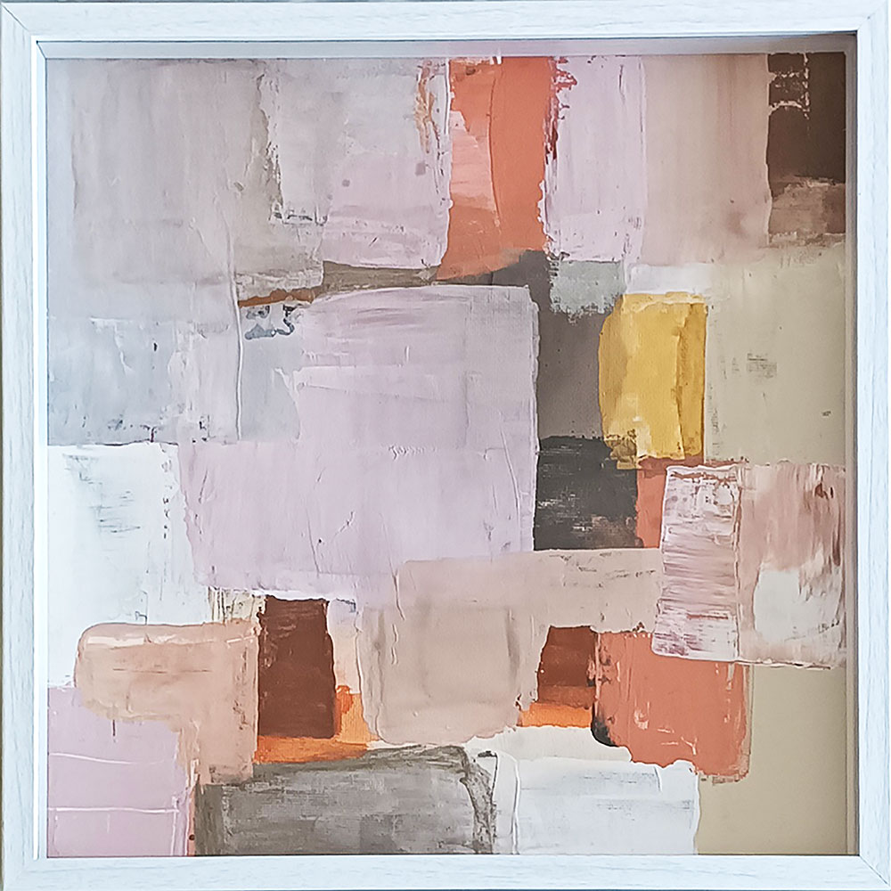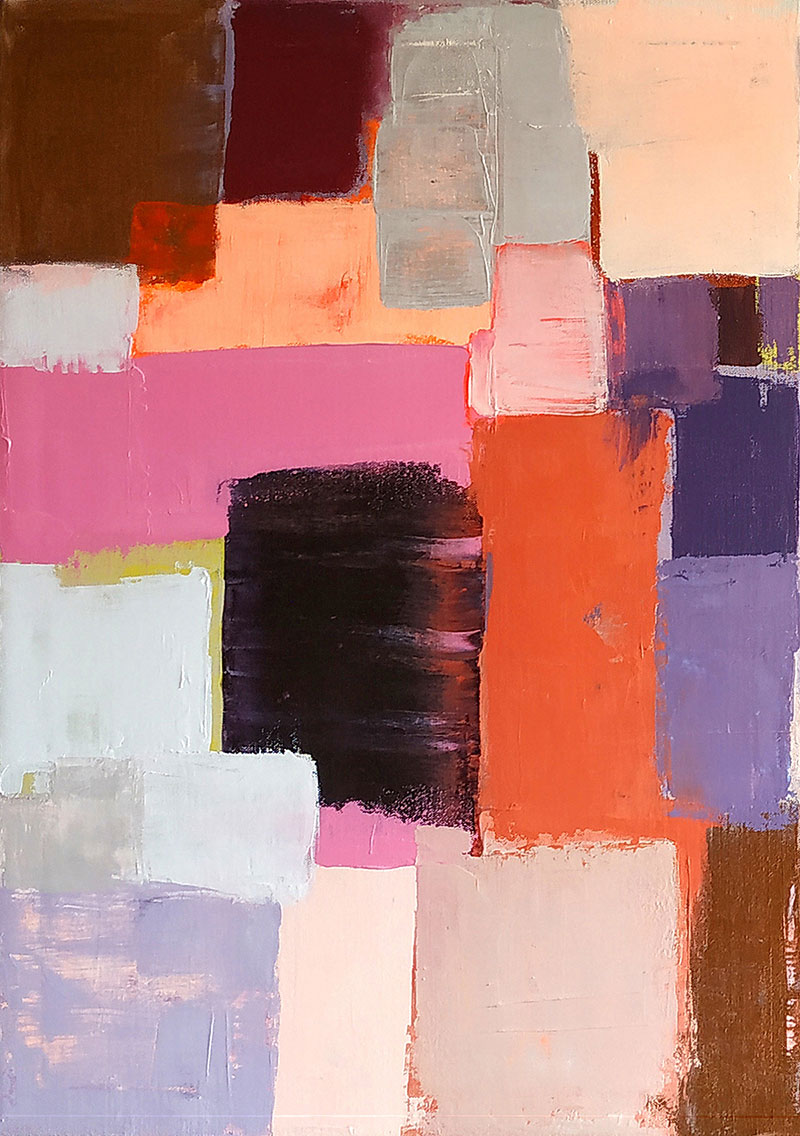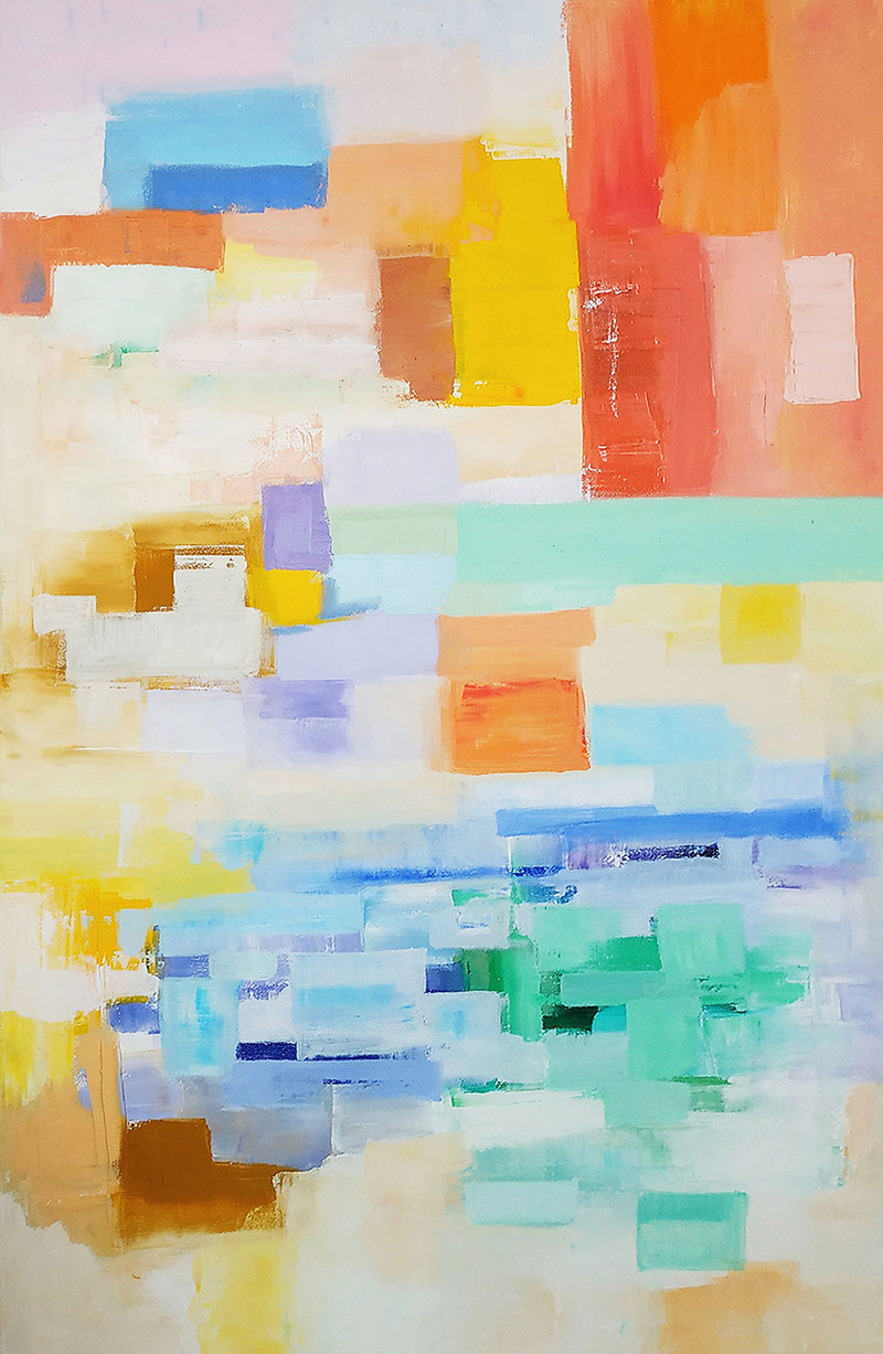 Inspirada en la felicidad! Expreso en HAPPINESS el sentido de la felicidad, que no es un todo, sino que esta lograda por un conjunto de pequeños momentos de mi vida. Motivada hacia una tendencia a eliminar lo que me distrae de aquello que es importante en mi vida, algunas pinturas las transformo en obras minimalistas, que se caracterizan por las formas geométricas mínimas en franjas amplias de colores, dejando a la vista espacios sin cubrir y errores visibles, integrados en la pintura.
