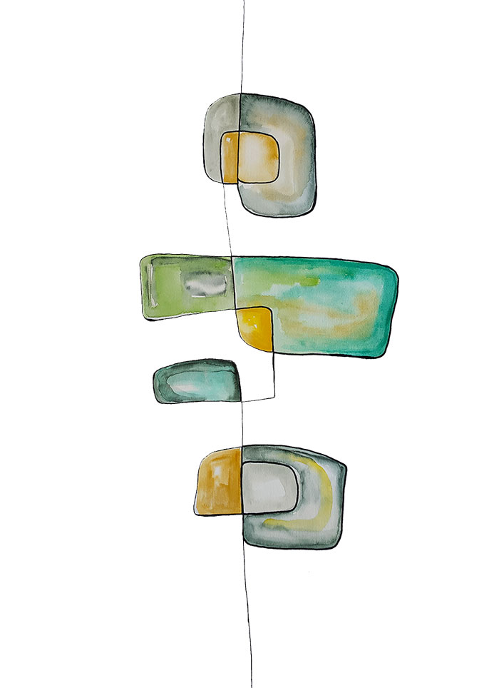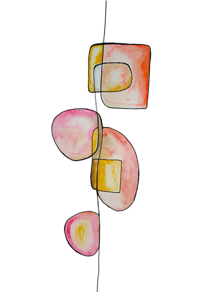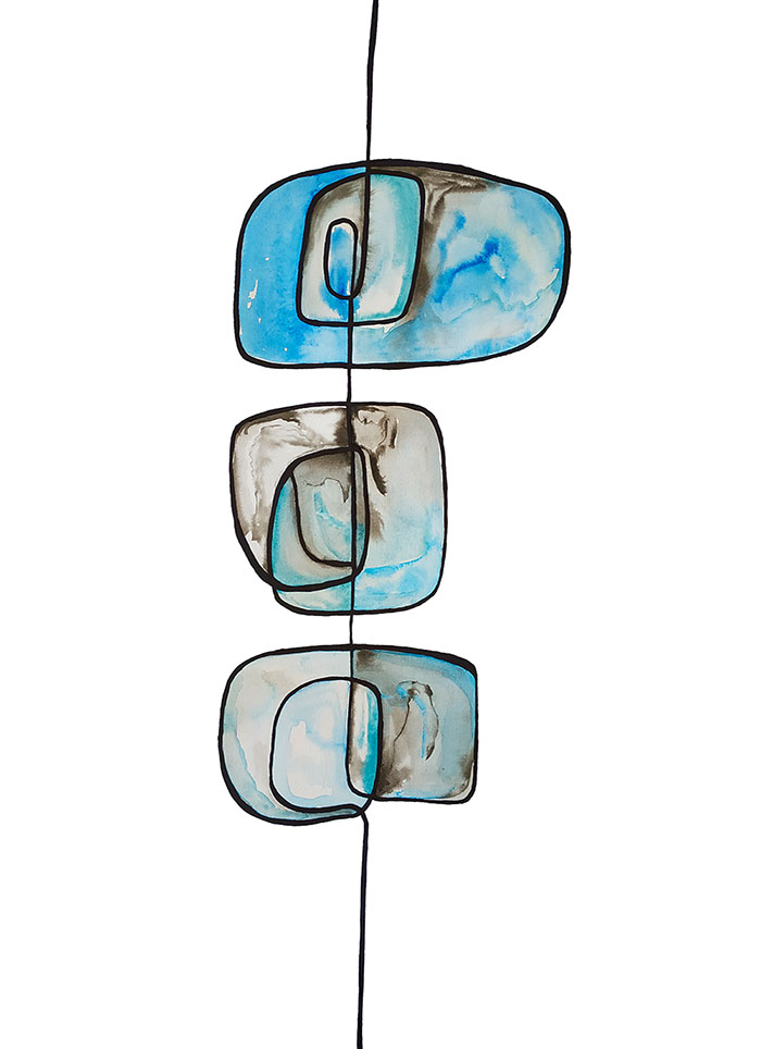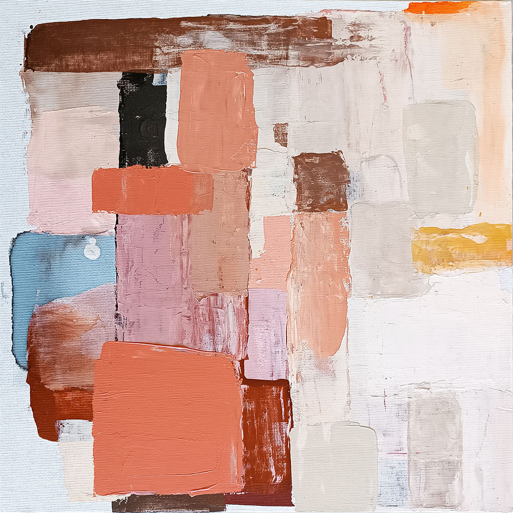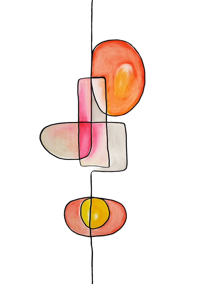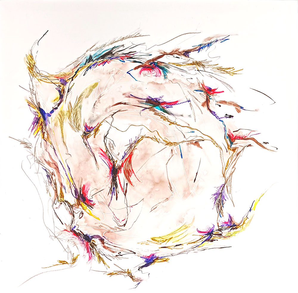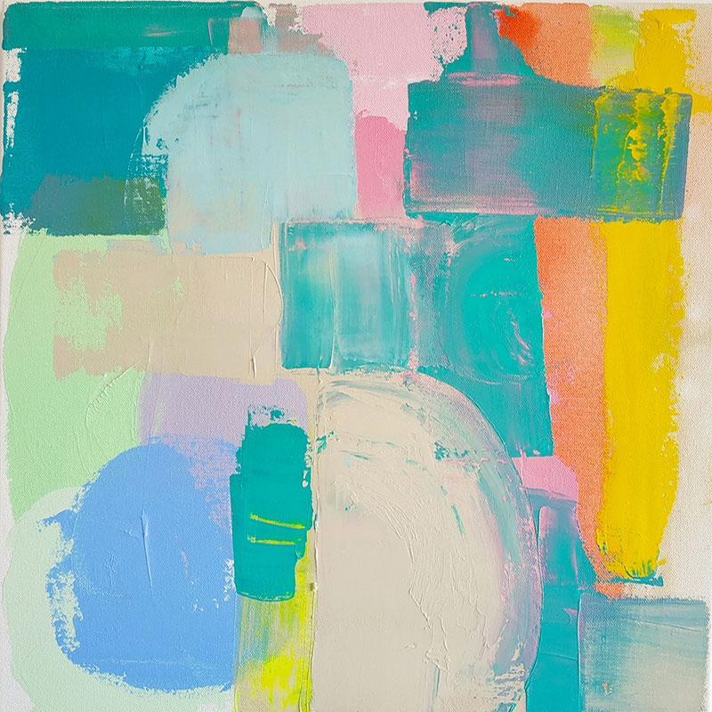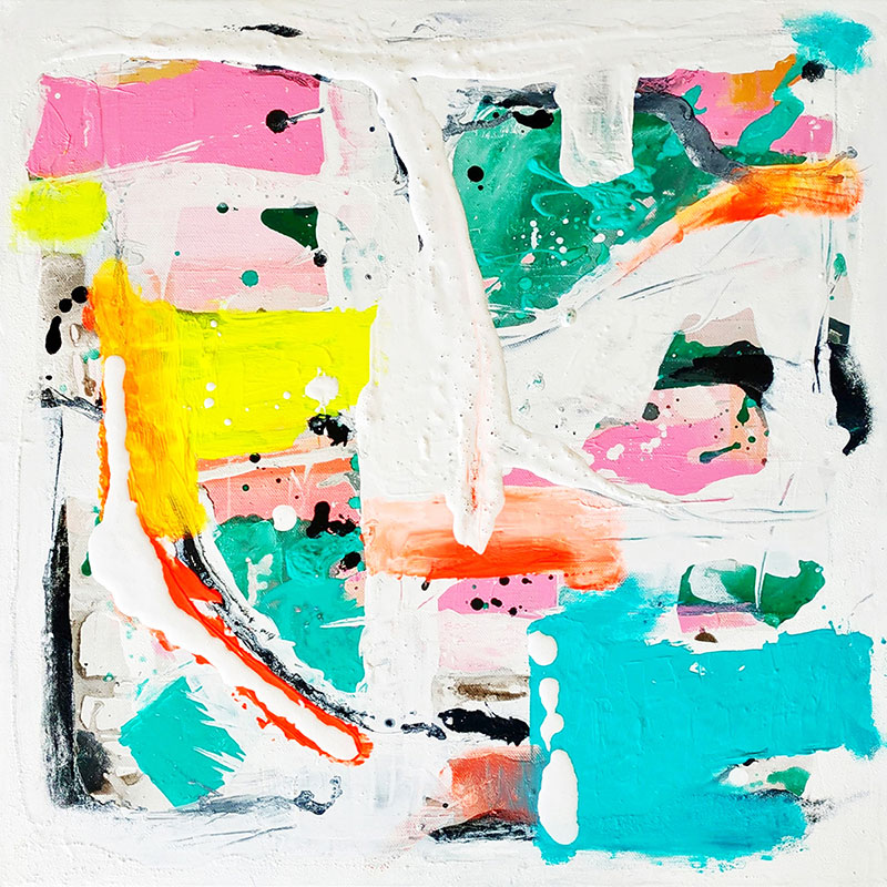 El momento de creación de GEOMETRIC me otorga la capacidad de ordenar y situar las conexiones con las personas que me rodean, generando sensasiones que rítmicamente se expanden por el lienzo, para volver a mí, en forma de desarrollo y crecimiento personal. Represento como centro en negro, un hilo conductor, que me lleva a moverme y atravesar diversas fases y momentos de mi existencia. Mediante formas y colores, simbolizo a las personas y sentimientos que aparecen y se encuentran en mi vida.