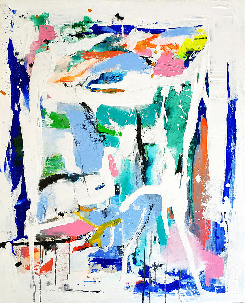 El uso de colores llamativos, mezclados con áreas líquidas en color blanco, hacen de la colección DIVERSITY, una composición increíblemente activa y vibrante, reflejando una diversidad de pensamientos que fluyen de mi interior.