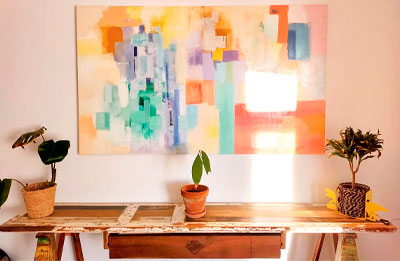 Me enamoré de "SEGUIR SOÑANDO" a primera vista. Estaba pasando un momento difícil tras la muerte de mi padre y ví en el cuadro una paz, una soledad buscada, un guiño a una nueva vida, diferente y dolorosa pero con nueva luz, como si él me dijera "SIGUE SOÑANDO" yo estoy bien! Andrea tiene una sensibilidad preciosa y usa los colores de una forma que te hace sentirlos dentro de tí. Gracias!